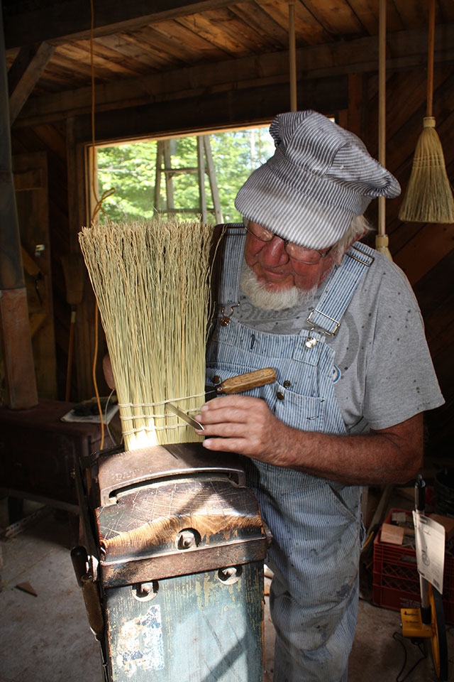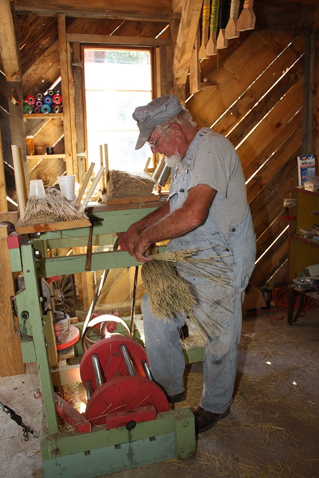 Across the old logging railroad from the Loom House you will find Wellington Farm USA’s new Broom Shop. Commonly operated on a daily basis, here you will find the broom maker creating everything from broom handles to whisk broom or sweep brooms to cake testers. All of the sweep brooms manufactured here are made in the style and tradition of the Shakers. All of the brooms are created by hand from the winding of the straw on the broom handle to the final stitching of the broom to make it hold. Brooms are available for purchase in the Broom Shop or from the Gift Shop located in the Visitors Center.