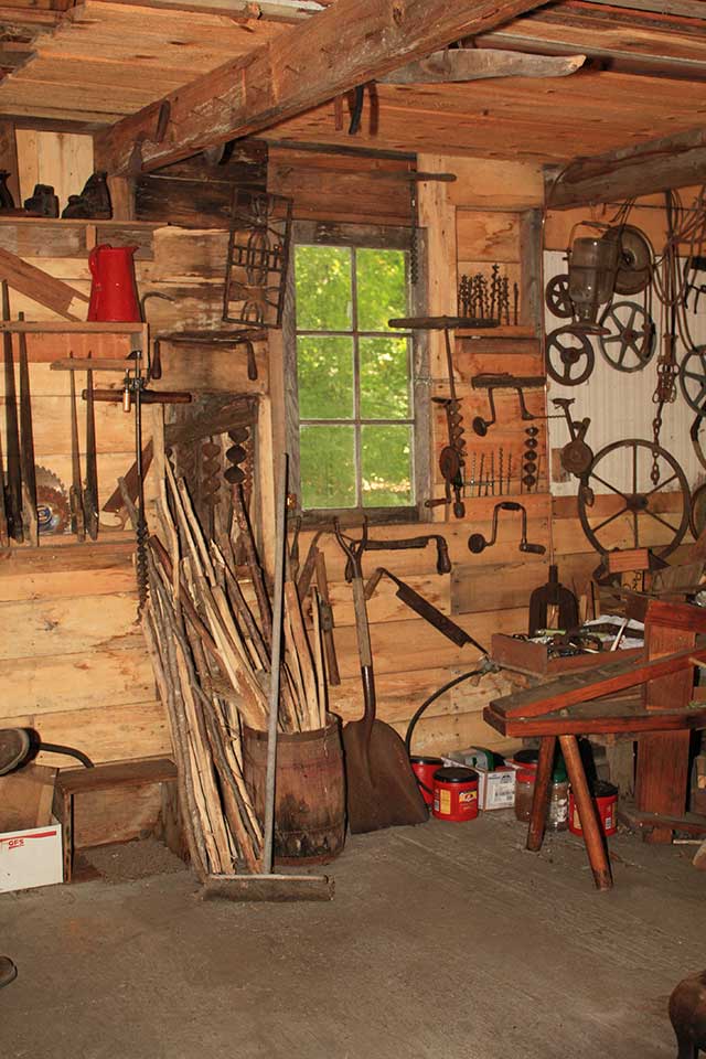 A short distance from the basket maker’s shop is a small structure which is patiently awaiting a crafter to adopt it. At one time, it was the broom makers shop. The cottage is just the right size for perhaps a wood carver, or maybe a potter.